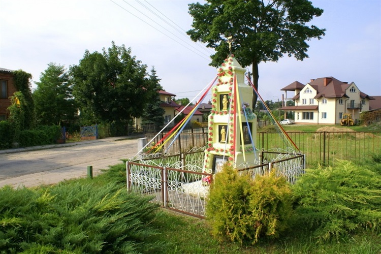 Spotykane w miejscowości kapliczki i krzyże przydrożne bogato ozdobione są sztucznymi kwiatami i wstęgami.