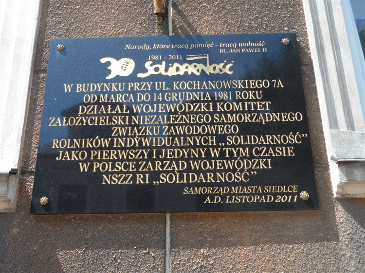 Tablica pamięci „30 lecia - Solidarności” znajduje się na budynku przy ulicy Kochanowskiego 11/13. Informuje ona, że w budynku przy ulicy Kochanowskiego 7a do dnia 14 sierpnia 1981 r. działał Wojewódzki Komitet Założycielski Niezależnego Samorządnego Związku Zawodowego Rolników Indywidualnych „Solidarność”.