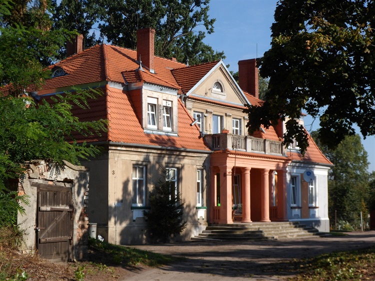 Dwór powstał na początku XX w. dla wspomnianego Tiedemanna. Nawiązywał do polskiego dworu barokowego. Parterowy dom nakrywał mansardowy dach, pod którym mieściło się użytkowe poddasze. Fasadę frontową poprzedzał portyk wsparty na czterech kolumnach z wyjściem prowadzącym na podjazd.