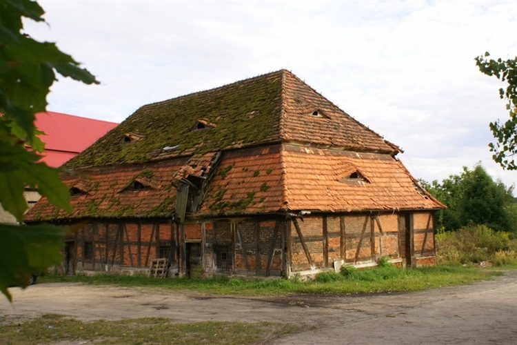 Spichlerz zbudowany został na rzucie prostokąta, jest parterowy o konstrukcji szkieletowej. Obiekt ma dwie kondygnacje magazynowe poddasza. Dach posiada półkoliste okienka na każdej kondygnacji oraz ganek na pierwszej kondygnacji przeznaczony do transportu zboża. Spichlerz został wzniesiony w 1820 r.