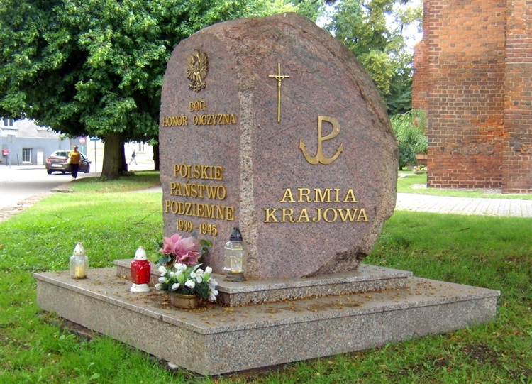 Pomnik ten stoi w Żninie przy ulicy 700-lecia, tuż przy kościele farnym św. Floriana i naprzeciwko Sufraganii. Postawiony został w hołdzie ludziom, a szczególnie żołnierzom Armii Krajowej walczącym z hitlerowskim okupantem podczas drugiej wojny światowej. Pomnik jest w formie dużego głazu granitowego posadowionego na niskim cokole. Na pierwszej z dwóch bocznych i wypolerowanych ścian granitu umieszczono krzyż, znak Polski Walczącej i napis: "Armia Krajowa", a na drugiej godło Polski z napisem: "Bóg Honor Ojczyzna" i niżej "Polskie Państwo Podziemne 1939-1945".