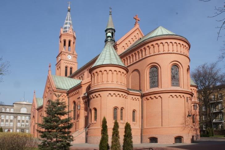 Neoromańska, ceglana, trójnawowa bazylika pw. Matki Bożej Bolesnej zbudowana w 1901 r. na planie krzyża. Na wieży znajduje się ażurowy hełm. Elewację kościoła zdobi arkadowy fryz i lizeny. Za kościolem znajduje się Grota Matki Boskiej z Lourdes, a obok kościola symboliczny grób ks. Jerzego Popiełuszki. Wewnątrz świątyni na uwagę zasługują witraże, których nie sposób wymienić, ponieważ jest ich naprawdę sporo. Godnym uwagi jest oltarz główny w formie tryptyku. Jego część środkową zajmuje kopia piety watykańskiej Michała Anioła, wykonana we Włoszech z marmuru diamentowqego. Podziwiać można rownież inne ołtarze: św. Antoniego Padewskiego, św. Łazarza, św. Józefa, św. Kazimierza. Okazale prezentuje się ambona oraz chrzcielnica.