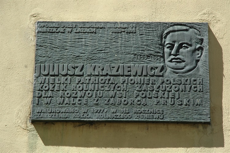 Juliusz Kraziewicz urodził się 20 maja 1829 roku w Lidzbarku. Z jego inicjatywy powstało w 1862 roku Włościańskie Towarzystwo Rolnicze jako pierwsza tego typu organizacja na ziemiach polskich i zarazem pierwowzór późniejszych kółek rolniczych. W 1866 roku założył Towarzystwo Gospodyń w celu ocalenia lokalnego folkloru i podtrzymania świadomości narodowej w zaborze pruskim. Z jego inicjatywy 3 stycznia 1867 roku rozpoczęto drukowanie rolniczego tygodnika "Piast", który ukazywał się do 1869 roku.