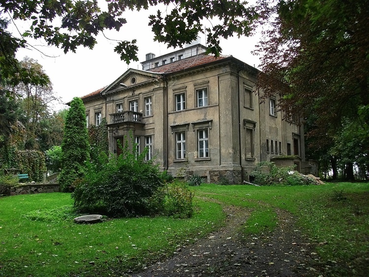 Budynek stoi w parku założonym w XIX w., w którym znajdują się trzy stawy, z których jeden wysechł tworząc wraz z sąsiadującym kopcem ciekawy element otoczenia.