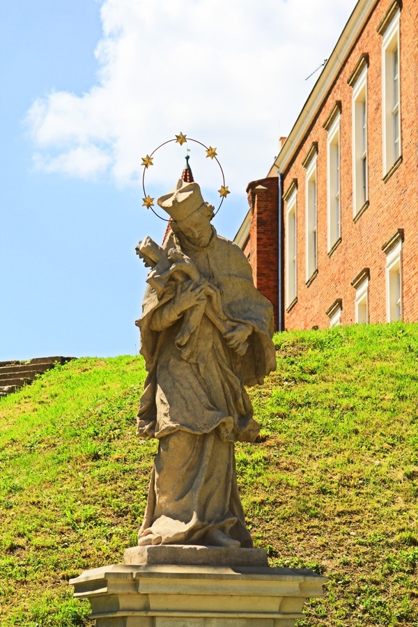 Przy Placu Zamkowym w Legnicy stoi figura św. Jana Nepomucena. Podświetlona figura stoi w pobliżu Bramy Głogowskiej przed głównym wejściem do zamku. Rzeźba św. Jana Nepomucena usytuowana została na cokole. W 2011 roku bardzo zniszczona oryginalna rzeźba pochodząca z XVIII wieku została poddana renowacji i przeniesiona do lapidarium przy Muzeum Miedzi. Na miejscu oryginalnej rzeźby ustawiono replikę.