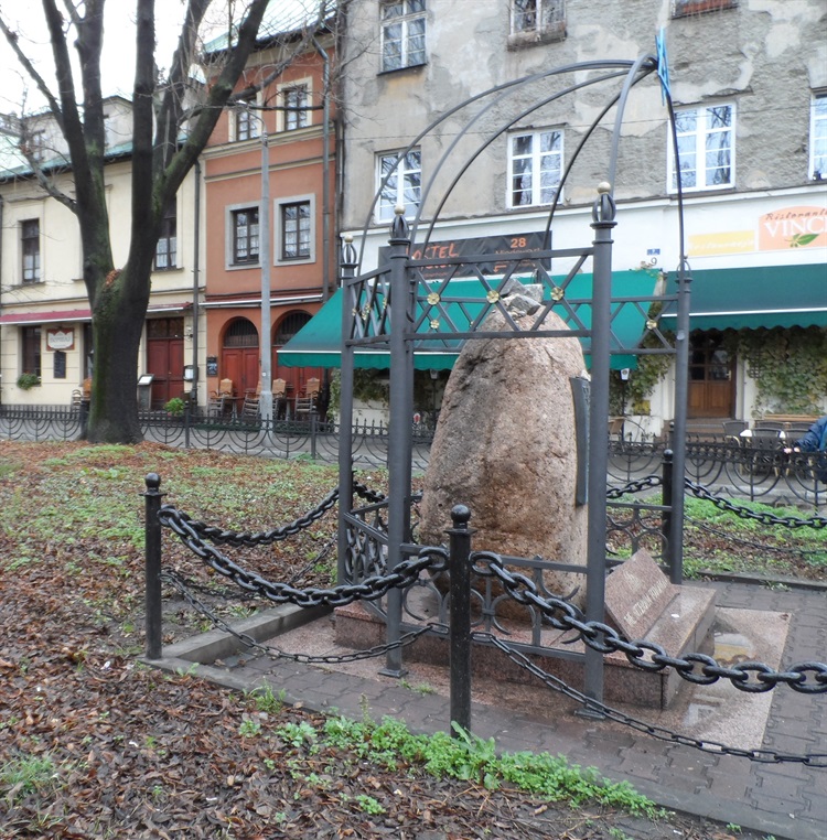 Pomnik pamięci krakowskich ofiar holokaustu znajduje się na skwerze na samym środku ulicy Szerokiej. Głaz pamięci z tablicą poświęcony pamięci zamordowanych przez hitlerowców podczas II wojny światowej krakowskich Żydów. Na tablicy został wyryty napis w językach polskim, angielskim i hebrajskim: „Miejsce zadumy nad męczeńską śmiercią 65 tysięcy obywateli polskich narodowości żydowskiej z Krakowa i okolic zamordowanych przez hitlerowców w czasie II wojny światowej". Został ufundowany przez Fundację Rodzinny Nissenbaumów.