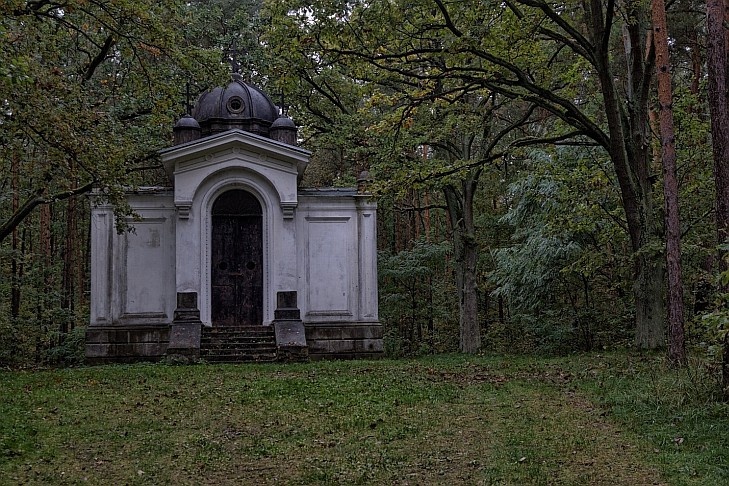 Cerkiew - kaplicę grobową rodziny carskiego generała, hrabiego Aleksandra Tolla, zbudowano w 1885 roku na planie krzyża greckiego. Górna jej część pełniła funkcję sakralną, dolna zaś krypty. Cerkiew zainspirowana została architekturą bizantyjską i ruską - reprezentuje tzw. styl neobizantyjski.