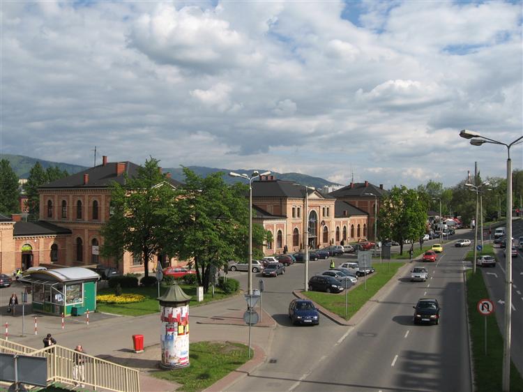 Początki linii kolejowej w Bielsku sięgają 1855 roku. Utworzono wówczas połączenie z Dziedzicami, tzw. odnogę Kolei Północnej łączącej Kraków z Wiedniem. Bielski dworzec kolejowy powstał w drugiej połowie XIX wieku, a do użytku oddano go w 1890 roku. Budynek wzniosła firma Karola Korna, na wzór wiedeński. Dziś można nadal podziwiać wspaniałe wnętrza (warto zobaczyć szczególnie polichromie), które stosunkowo niedawno odrestaurowano.