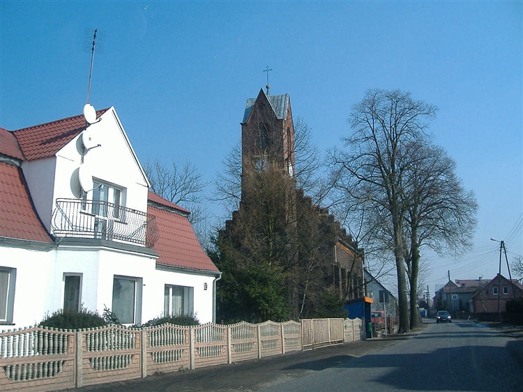Neoromański kościół z kwadratową wieżą zbudowano z cegły otrzymanej z cięcia darniowej rudy żelaza. Świątynię ufundowali Gustaw Adolf i Ludwika Radziwiłł. W oknie znajdującym się w ścianie prezbiterium znajduje się witraż z herbem Hohenzollernów.