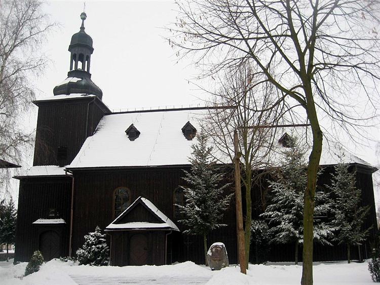 Drewniany kościół został ufundowany przez Władysława Hermana ok. 1743 r. Posiada barokowe wnętrze z XVIII w. Na przykościelnym cmentarzyku znajdują się zabytkowe groby. Kościół dostępny jest do zwiedzania przed mszą lub po telefonicznym umówieniu się z proboszczem.