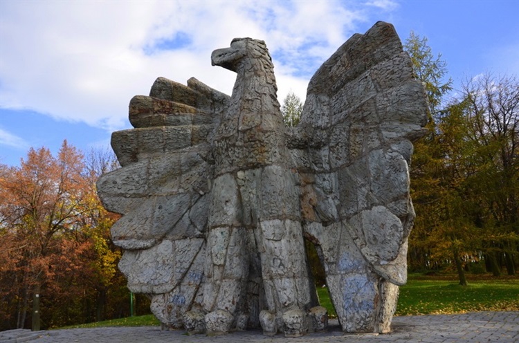 Pomnik stoi na wzgórzu parkowym im. Stanisława Firleja. Został wykonany w tutejszych Zakładach Maszyn Ceramicznych i Kamionki i jest największą ceramiczną figurą orła w Europie.