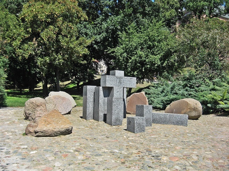 Pomnik jest oryginalny, stoi w obniżeniu terenu wkomponowany w skwer, wciśnięty w nieckę między katedrą, ulicą Zamkową i zamkiem w Sandomierzu. Kompozycja zajmuje kilkanaście metrów kwadratowych i składa się z granitowych bloków i otaczających je głazów. Głaz znajdujący się jakby poza kamiennym kręgiem ma napis o stosownej treści: "Mieszkańcom Ziemi Sandomierskiej, ofiarom II wojny światowej. Społeczeństwo". Upamiętnia wszystkich mieszkańców Ziemi Sandomierskiej, którzy ponieśli śmierć w czasie II wojny światowej, a my wiemy, że rachunek za ostatnią wojnę jest wciąż niepodliczony...