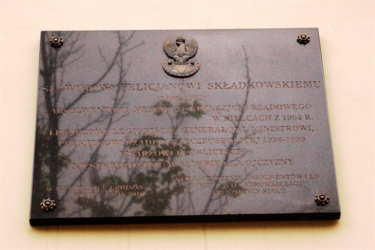 Tablica upamiętniająca gen. Sławoja Felicjana Składkowskiego znajduje się na budynku w którym mieściło się Męskie Gimnazjum Rządowe, do którego uczęszczał i był jego absolwentem w 1904 roku. Ufundowano ją w 125 rocznicę urodzin generała, we wrześniu 2010 roku.