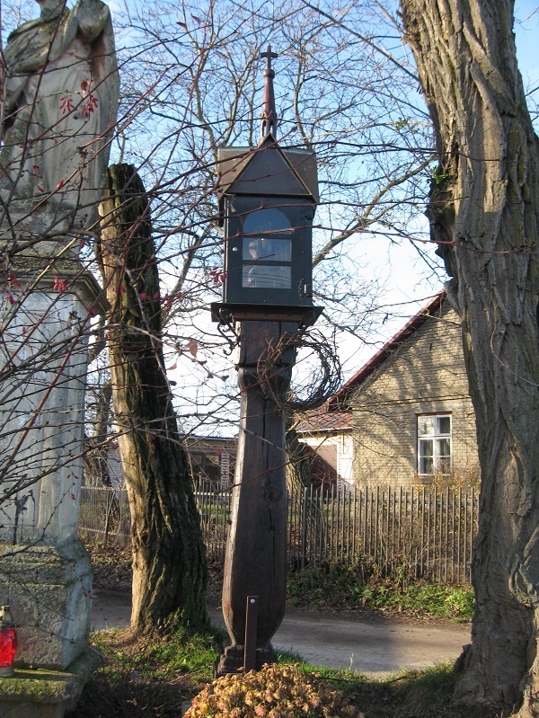 W Malicach obok zespołu trzech kamiennych rzeźb stoi mniejsza, typu słupowego kapliczka z figurką Jezusa Frasobliwego. Pochodzi prawdopodobnie z końca XIX wieku. Zwieńczona metalowym daszkiem z kościelną wieżą, chroniącym umieszczoną w środku ludową rzeźbę. Jak pisze Józef Myjak - znany regionalista; wykonał ją na zamówienie bogatego rolnika Antoniego Kolasińskiego rzeźbiarz ludowy Wawrzyniec Socha. Zniszczoną częściowo podczas pożaru kapliczkę odnowiło w 1933 roku koło Związku Młodzieży Wiejskiej "Wici".