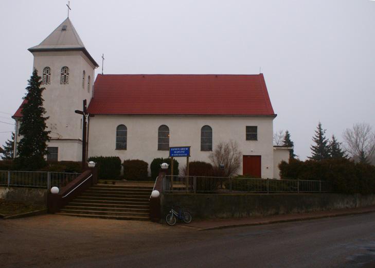 Kościół murowany pw. Nawiedzenia Najświętszej Maryi Panny wybudowano w 1960 r., w miejscu wcześniejszych świątyń. Od XV wieku, w głównym ołtarzu kościoła znajduje się obraz Matki Bożej Gościeszyńskiej, namalowany prawdopodobnie w latach 1420-1475 przez Dircka Boutsa. Obraz jest zaliczany do cennych dzieł sakralnej sztuki niderlandzkiej. Namalowano go temperą na desce z podkładem płóciennym.