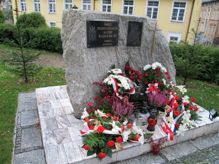 Przy kościele pw. św. Piotra i Pawła przy ul Kłodzkiej w Dusznikach Zdroju znajduje się monument upamiętniający ofiary Katynia oraz polskich zesłańców na Sybir w latach 1940-1957. Na płycie pamiątkowej znajduje się tablica ufundowana w 1996 roku dotycząca zesłańców. Obok niej widzimy tablicę z wizerunkiem Matki Boskiej z Dzieciątkiem Jezus oraz dalej umocowany krzyż. Na samym dole umieszczona jest trzecia tablica pamiątkowa pod którą w 2000 roku złożono urnę z ziemią pomordowanych żołnierzy w Katyniu w 1940 roku.