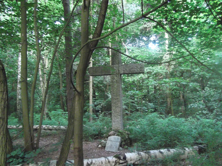 Zbaczając z drogi z Nowej Wsi - Zamek w kierunku Nowej Wsi Zbąskiej w lesie na nadjeziornej skarpie dostrzec można krzyż. Przy krzyżu znajduje się tablica z inskrypcją w języku niemieckim, która w tłumaczeniu brzmi „Moje oczy patrzą na ginący świat”. Skąd w lesie krzyż ?. Żeby odpowiedzieć na to pytanie trzeba cofnąć się do początku XX wieku.