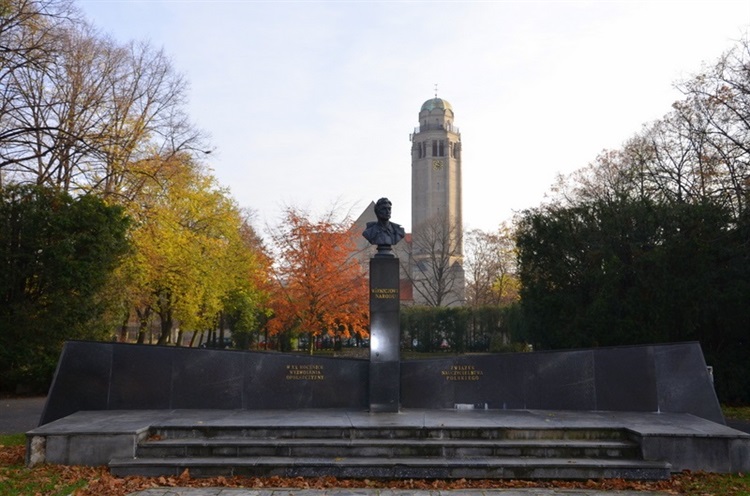 Popiersie Adama Mickiewicza zostało wykonane przez Piusa Welońskiego (1849-1931). Pomnik powstał z inicjatywy Związku Nauczycielstwa Polskiego w 1965 r. w XX rocznicę wyzwolenia Opolszczyzny.