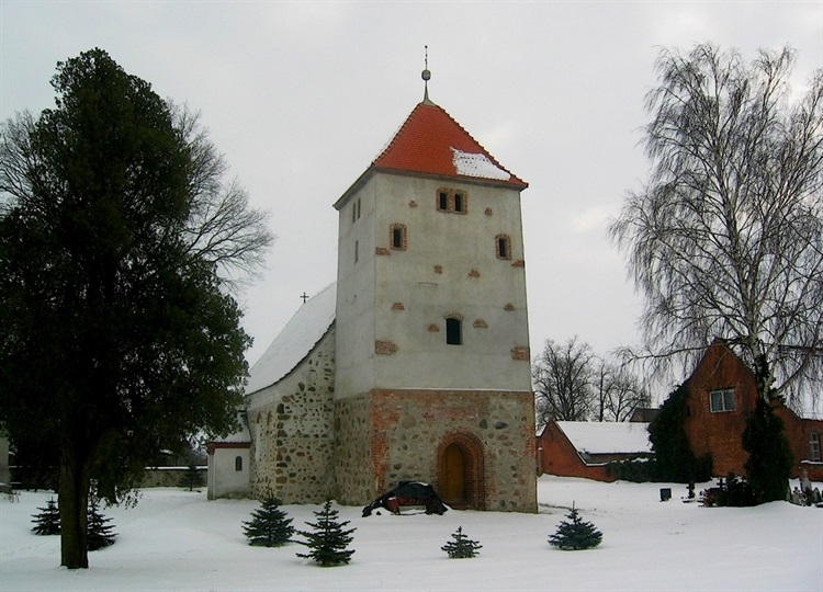 Na płaskim terenie w centrum wsi wzniesiono na początku XV w. wczesnogotycki kościół. Z całą pewnością była to świątynia katolicka, jedynie w czasach reformacji pełniąca funkcję protestanckiej. Po wojnie ponownie rekatolicyzowana i w 1963 r. włączona do parafii w Laskach Lubuskich. Dziś nosi wezwanie Matki Boskiej Różańcowej. Msze odbywają się tu w każdą niedzielę o godz. 9.30.