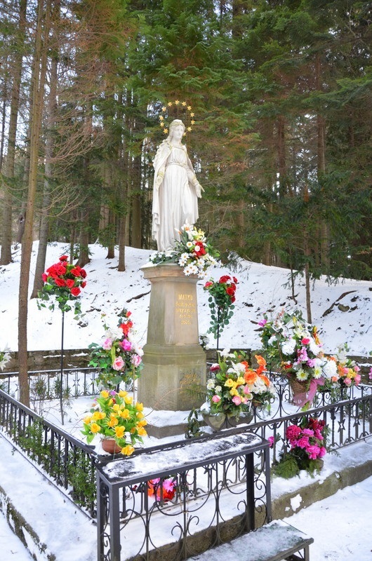 Kamienna figura Matki Bożej Łaskawej usytuowana na zachodnim stoku Góry Parkowej w pobliżu źródełka. Pomnik projektu krakowskiego malarza Artura Grottgera i fundacji hrabiny Seweryny Badeni został wzniesiony w 1864 r.