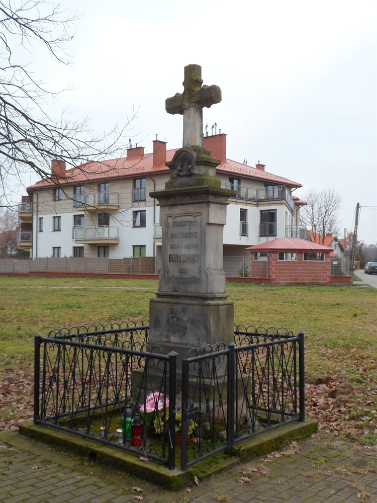 Jedną z pamiątek dawnego Tarchomina i Nowodworów jest przydrożna kapliczka znajdująca się u zbiegu ulic Książkowej i Józefa Mehoffera. Ten malowniczy obiekt małej architektury sakralnej ustawiono w tym miejscu w 1906 r. Jego fundatorami byli jak widnieje to na cokole małżonkowie Michał i Agnieszka Borkowscy, właściciele folwarku w Nowodworach. Kamienną kapliczkę z krzyżem wystawili w podzięce za uratowanie z powodzi, która miała miejsce na początku XX wieku oraz wotum chroniącym przed następnymi wylewami Wisły. Krzyż Borkowskich otacza metalowe ogrodzenie.