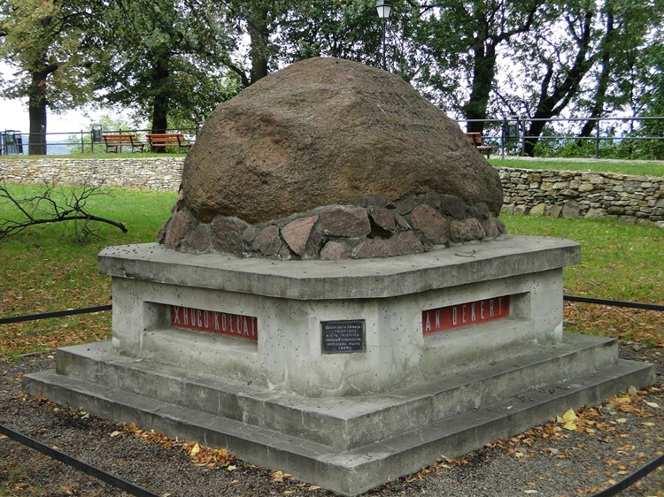 Na Wzgórzu Zamkowym wśród drzew stoi betonowy postument, na którym posadowiony jest głaz. Ten swoisty pomnik został wystawiony w 1891 roku, w setną rocznicę uchwalenia Konstytucji 3 Maja. Na czterech bokach postumentu są wypisane nazwiska zasłużonych w przygotowanie projektu konstytucji :