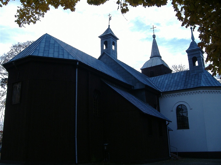 Pierwszy drewniany kościół powstał w XII w. i przetrwał do XVII w. Wówczas kasztelan łącki Wojciech Skarbek-Malczewski ufundował nową świątynię, która istnieje do dzisiaj. W 1853 r. dobudowana zostaje z fundacji właściciela Świerczyny Jana Modlibowskiego murowana kaplica Przemienienia Pańskiego. Wokół kościoła znajduje się cmentarz z nagrobkami m.in. rodziny Wyssogotów-Zakrzewskich.