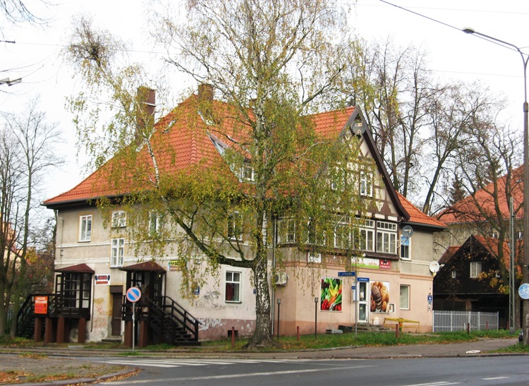 Królewiecka to jedna z najdłuższych ulic Elbląga. Na rogu z ulicą Pionierską pod numerem 155 znajduje się piętrowy budynek z ozdobnym szczytem. Powstał w latach 30. XX wieku dzięki elbląskiemu towarzystwu budowlanemu o nazwie "Rodzinna Strzecha".