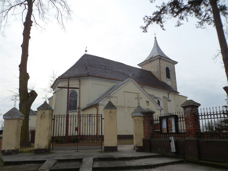Kościół św. Mateusza zbudowany został w centrum wsi na skarpie pradoliny Warty. Wzniesiono go w XVI w. w stylu późnogotyckim. Z woli właściciela wsi Rocha Żychlińskiego przez pewien czas od 1578 r. użytkowali go ewangelicy. Pierwotna budowla poddawana była kilkukrotnym przebudowom w XVII, XVIII i XIX w. W ich wyniku zatarciu uległy gotyckie cechy budowli.