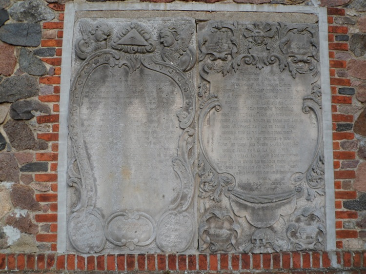Cmentarz przykościelny i sama świątynia była miejscem spoczynku właścicieli tutejszych dóbr oraz wiernych z parafii pławskiej. Pamiątkami po istnieniu tej nekropolii są piękne, renesansowe tablice epitafijne wmurowane w ściany kościoła. Widnieją na nich kartusze herbowe szlacheckich rodów z Pławia.
