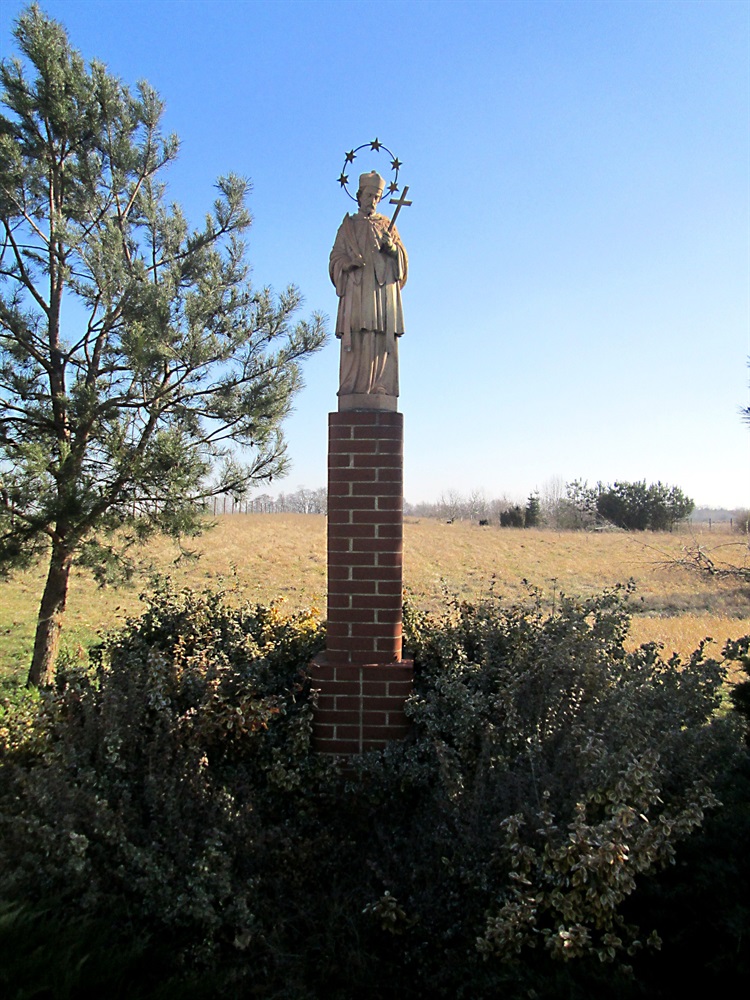 Figury św. Jana Nepomucena na stałe wkomponowane są w krajobraz naszego kraju. Jedna z takich figur znajduje się we Włoszakowicach, po prawej stronie, przy głównej drodze wyjeżdżając w kierunku Boszkowa. Trzeba przyznać, że trudno ją dostrzec. Sam się o tym przekonałem, ponieważ dopiero teraz udało mi się ją dostrzec, a przejeżdżam tam dość często. Wszystko wskazuje na to, że jest to raczej figura współczesna.