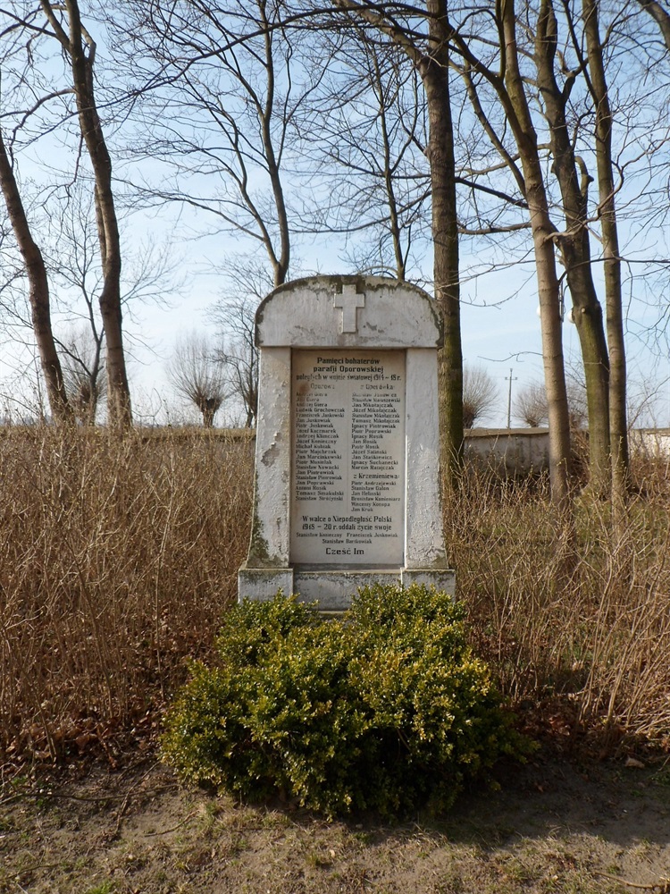 W Oporowie pomnik poległych mieszkańców wsi oraz pobliskich Oporówka i Krzemieniewa, nazywany pomnikiem bohaterów parafii oporowskiej, znajduje się na terenie przykościelnego cmentarza. Na tablicy wymieniono 42 nazwiska żołnierzy, którzy stracili życie w czasie I wojny światowej, oraz trzech osób poległych w okresie walk o niepodległość toczonych w latach 1918-1920.