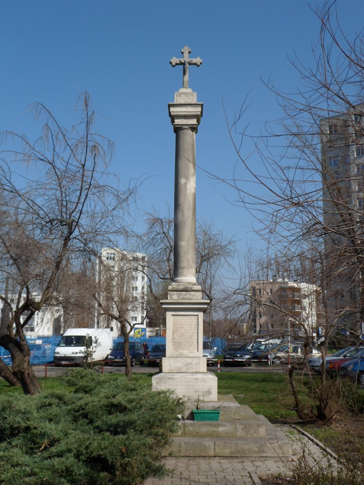 Epidemia dżumy panująca na rozległych obszarach Polski do Warszawy dotarła w 1708 r. Zmarłych mieszkańców grzebano na cmentarzu utworzonym poza granicami miasta. Na jego miejsce wybrano wieś Stare Bródno. Na terenie nekropolii w 1708 r. Michał Waremberger, który stracił w wyniku dżumy członków rodziny, wystawił pomnik. Była to wysoka kolumna zwieńczona krzyżem i okolicznościowym napisem na cokole.