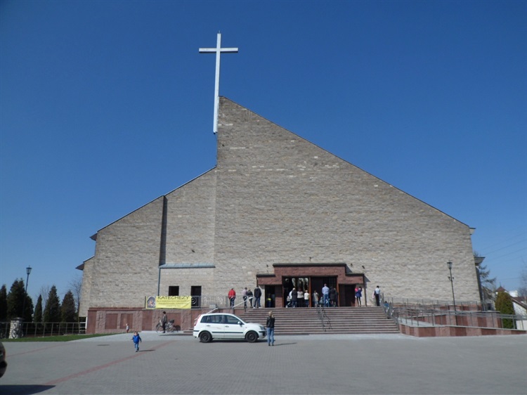 Nową świątynię konsekrował 9 maja tego roku kard. Józef Glemp. Autorami projektu dwupoziomowego kościoła byli architekci Ryszard Trzaska i Janusz Olszewski. W ołtarzu wyróżnia się krzyż autorstwa rzeźbiarza Jerzego Machaja nazywanego „artystą od krzyży”.