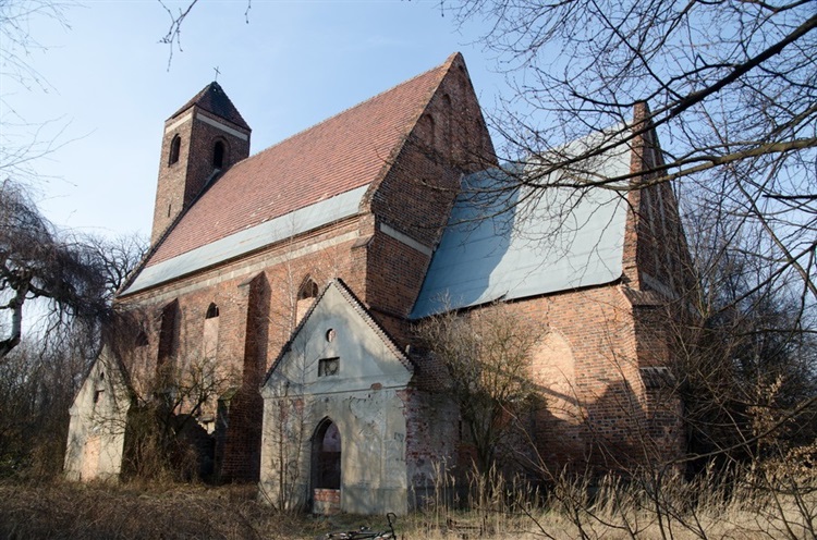Kościół wybudowany został w stylu gotyckim, jest jednonawowy z wieżą oraz prostokątnym prezbiterium. W kościele znajdowały się ołtarze i ambona wykonane w 1901 roku przez głogowskiego rzeźbiarza Jäkela, organy firmy Schlag i synowie oraz dzwon z 1498. Kościół otacza mur wybudowany w XVI wieku. Przy kościele znajdują się cmentarz oraz Kaplica Góry Oliwnej z XVIII wieku.