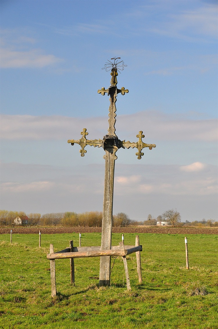 Przemierzając odcinek drogi od śluzy Dębowo do Dolistowa Starego mijamy miejscowość Jasionowo położoną tuż nad rzeką Biebrzą. W pobliżu zabudowań, przy polnej drodze po prawej stronie - wśród nadbiebrzańskich łąk stoi stary, drewniany krzyż. Nie zawsze można do niego blisko podejść, ponieważ Biebrza jest rzeką kapryśną i kiedy przybiera zalewa okoliczne pola i łąki tworząc ogromne rozlewiska. Wtedy jednak, gdy jest to możliwe warto tu podejść by z pokorą spojrzeć w przeszłość. Żaden bowiem krzyż nie powstał przypadkowo. Zawsze towarzyszyły mu jakieś ważne wydarzenia lub motywy. To mały, ale jakże znaczący symbol wiary mieszkańców danej społeczności warty uszanowania.