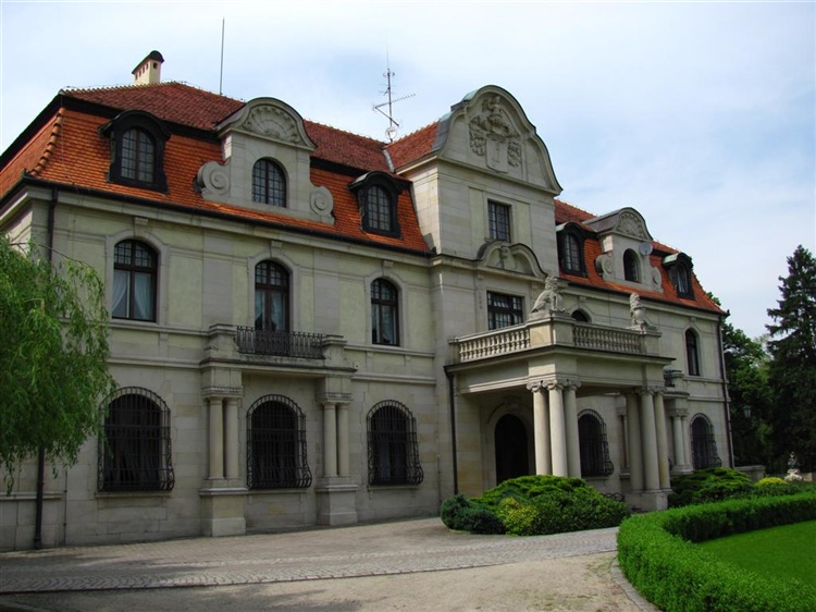 Jest to piętrowy, zbudowany na planie litery L, neobarokowy pałac z pocz. XX wieku, W fasadzie umieszczono herb rodowy oraz lwy strzegące wejścia. Obecnie obiekt jest siedzibą firmy Hodowla Roślin Smolice Sp. z o.o. Z oryginalnego wyposażenia zachował się pokój prezesa spółki.