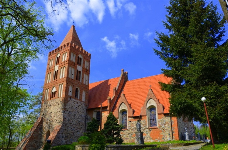 Kamienno-ceglana gotycka, orientowana świątynia została zbudowana na przełomie XIII/XIV wieku. W 1706 r. dobudowano kaplicę św. Anny. Wyposażenie kościoła pochodzi głównie z XVII i XVIII wieku. Na szczególną uwagę zasługuje oryginalna belka tęczowa z czasów budowy świątyni. Teren kościoła otoczony jest murem kamiennym.