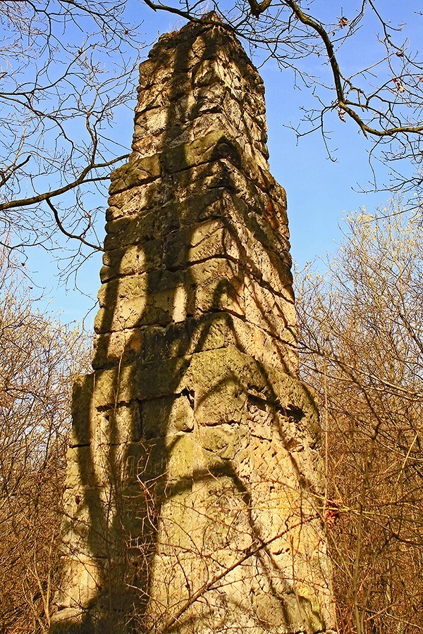 Zbudowany został z piaskowca. Pierwotnie na szczycie piramidy umocowana była rzeźba orła wykonana z brązu. Na dolnych ścianach wisiały pamiątkowe tablice z nazwiskami poległych żołnierzy. W rogach imponującego monumentu wmurowane były kule armatnie. Uroczyste odsłonięcie pomnika odbyło się 13 czerwca 1887 roku. Obecnie ogołocony pomnik stoi w zarośniętym lesie a dojście do niego jest utrudnione ponieważ trzeba pokonać nielegalne wysypisko śmieci.