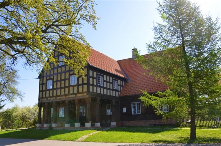 Wśród zabudowy żuławskich wsi znajdują się domy podcieniowe nazywane niekiedy dworami żuławskimi. Domy te były dowodami zamożności zamieszkałych w nich gospodarzy. Wywodzili się oni z osiedlonych w XVI wieku na Żuławach Wiślanych holenderskich osadników. O zamożności właściciela takiego domu świadczyła ilość kolumn (drewnianych słupów), na których wsparte jest wysunięte piętro. Każda kolumna odpowiadała jednej włóce ziemi, czyli około osiemnastu hektarom. Niestety, niewiele tych domów pozostało do obecnych czasów.