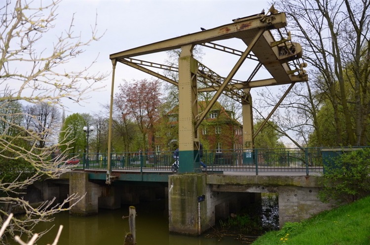 Przy ul. Sikorskiego na rzece Tudze wznosi się betonowo-stalowa konstrukcja mostu. Jest to most zwodzony wybudowany w 1936 r. Wybudowany został na miejscu poprzedniego o podobnej konstrukcji. Do lat 70-tych XX wieku rzeka była żeglowna o czym świadczą między innymi spichlerz, pomosty cumownicze oraz przystań żeglarska. Aby mogły przepłynąć jednostki pływające most był podnoszony po czym opuszczany. Mechanizm podnosił i opuszczał most w ciągu 3 minut. Obecnie most jest używany jedynie dla transportu samochodowego oraz ruchu pieszego.
