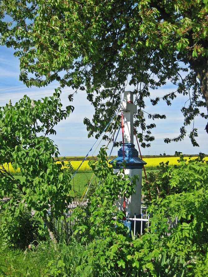 Na niewielkiej wysepce przy skrzyżowaniu lokalnych dróg, przed wjazdem do Strzyżowic znajduje się w kępce zieleni wotywny przydrożny krzyż. Został ufundowany z dobrowolnych składek tutejszych parafian w 1928 roku. Poświęcony 25-leciu pracy i pobytu duszpasterza tutejszej parafii, ówczesnego księdza Stanisława Górskiego. Obiekt jest polichromowany i ogrodzony płotkiem.