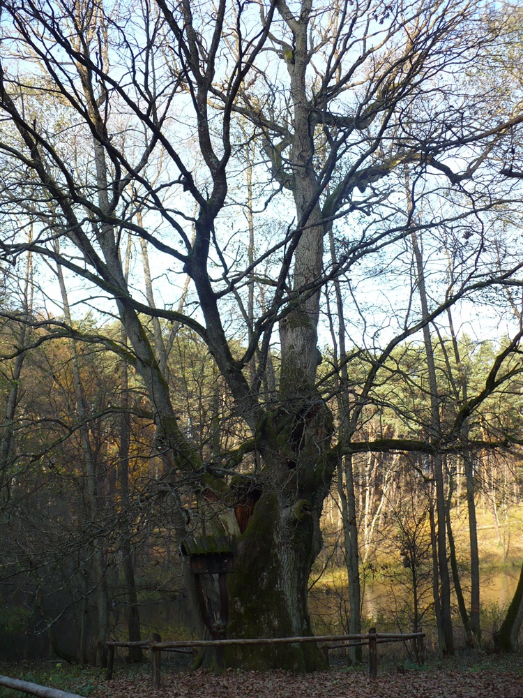 Okazały dąb szypułkowy wiek ponad 600 lat. Znajduje się w Parku Narodowym "Bory Tucholskie". Możliwy dojazd samochodem drogą udostępnioną do ruchu kołowego. Dąb ma obwód 6,7 m i wys. 25 m. Co do wieku, to można mieć wątpliwości - dęby szypułkowe tej wielkości zazwyczaj nie przekraczają 500 lat.