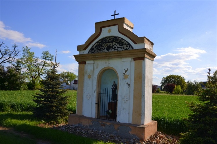 Murowana kapliczka stoi na łące nieopodal rzeki Osobłogi. Została wzniesiona w I-szej poł. XIX wieku. Na pilastrach ściany frontowej oraz półkolistej arkadzie znajdują się krzyże i gwiazdy, które prawdopodobnie zostały dorobione w okresie późniejszym podczas odnowy kapliczki. Wewnątrz pierwotnie znajdowała się figura św. Jana Nepomucena, obecnie znajduje się tutaj figura św. Franciszka z Asyżu ubranego w habit oraz biały sznur z trzema węzłami symbolizującymi trzy składane śluby: posłuszeństwa, ubóstwa i czystości.