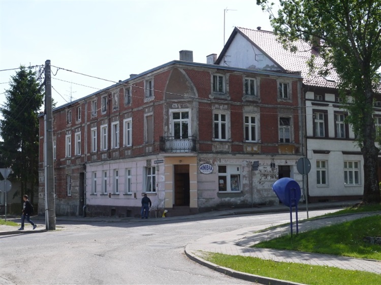 Wokół kwadratowego rynku w Młynarach do 1945 r. znajdowały się 24 eklektyczne kamienice, pochodzące z XVIII i XIX w. Były to w większości dwukondygnacyjne budynki mieszkalne, mieszczące też sklepy i zakłady rzemieślnicze. Dwie z nich pełniły funkcję ratusza. Przejście frontu w 1945 r. przetrwały jedynie cztery budynki, z których do dziś ostał się tylko jeden należący niegdyś do rzeźnika Schmidta. Miejsce po pozostałych, począwszy od lat 80., zabudowano. Na zdjęciu ocalała kamienica.
