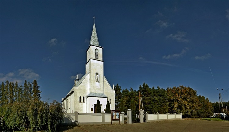 Pomysł budowy kościoła w Tryczówce zaistniał w 1921 roku dając początek staraniom o budowę świątyni. W 1925 roku powstały komitet parafialny kupił w Czarnej Wsi drewnianą kaplicę. Na początek postawiono więc drewnianą kaplicę i budynek plebanii. Parafię w Tryczówce erygował 8 IX 1928 r. abp Romuald Jałbrzykowski. W 1929 r. ks. Proboszcz Alfons Borowski rozpoczął budowę kościoła z pustaków. W 1930 roku kościół został poświęcony, a w październiku 1931 r. uroczyście konsekrowany przez abp Romualda Jałbrzykowskiego.