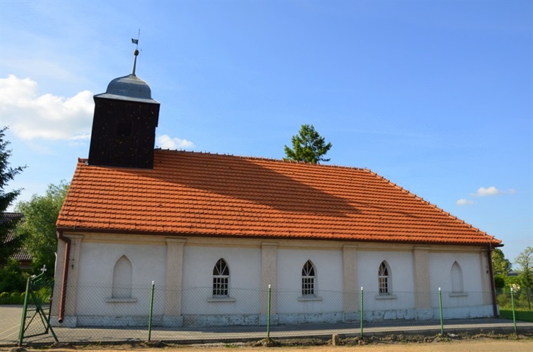 Kaplica cmentarna - taka była jej pierwotna nazwa - wzniesiona została w 1766 r. na terenie cmentarza. Po dobudowaniu zakrystii używana jest nazwa kościół - do dnia dzisiejszego znajduje się on na terenie miejscowego cmentarza.