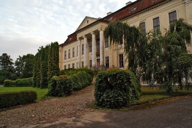 Dwukondygnacyjną rezydencję warto zobaczyć. Zdobi ją od frontu czterokolumnowy portyk. Na dobudowanym pod koniec XVIII w. szerokim podjeździe można jeszcze dostrzec ślady fontanny. W czasach świetności wnętrza pałacu olśniewały przepychem. Były tu między innymi teatr i ogród zimowy, prowadzący wprost do parku. Kolejni właściciele zgromadzili wiele cennych dzieł sztuki, między innymi flamandzkie arrasy, chińskie wazy i ogromną kolekcję egzotycznych motyli. Po II wojnie światowej większość wyposażenia została zrabowana. Niektóre portrety i meble trafiły do muzeum w Olsztynie, a część biblioteki do uniwersytetu w Toruniu.