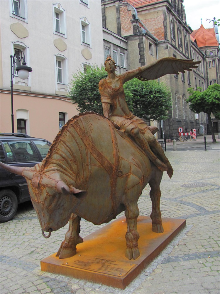 Rzeźba znajduje się na skwerze, przy ulicy Pocztowej i 1 Maja. Jest wykonana z czarnej stali w technologii metaloplastyki. Przedstawia Europę na byku. Autorem rzeźby jest armeński rzeźbiarz Vahan Bego, który do Polski wyemigrował w 1993 roku uciekając przed wojnami. Pomnik został ufundowany przez prezydenta miasta Jelenia Góra z okazji dziesiątej rocznicy przystąpienia Polski do Unii Europejskiej 1 maja 2014 roku.