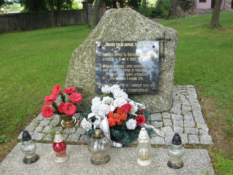 Na placu przykościelnym w Kowali-Stępocinie znajduje się obelisk upamiętniający ks. Stanisława Fijałkowskiego, proboszcza parafii Kowala w okresie powstania styczniowego. Uroczystość poświęcenia pomnika odbyła się 15 stycznia 2014 roku w 150 rocznicę powstania. "Narody tracąc pamięć,tracą życie" napis na czarnej granitowej tablicy i kilka słów o zasługach księdza patrioty pomagającego powstańcom i zesłanego do guberni archangielskiej. Na końcu fragment z Psalmu miłości Zygmunta Krasińskiego - "Niczym Sybir – niczym knuty I cielesnych tortur król! Lecz narodu duch otruty – To dopiero bólów ból! "